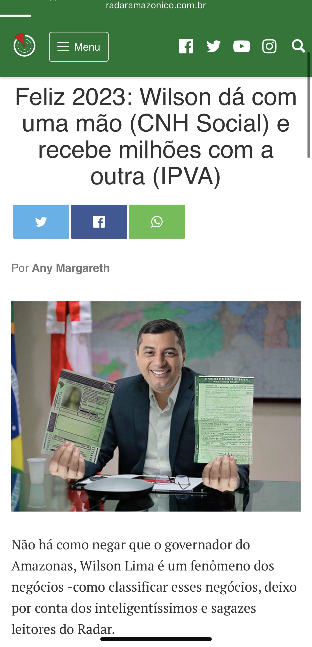 Veja matérias de Any atacando Wilson Lima, seu atual aliado: