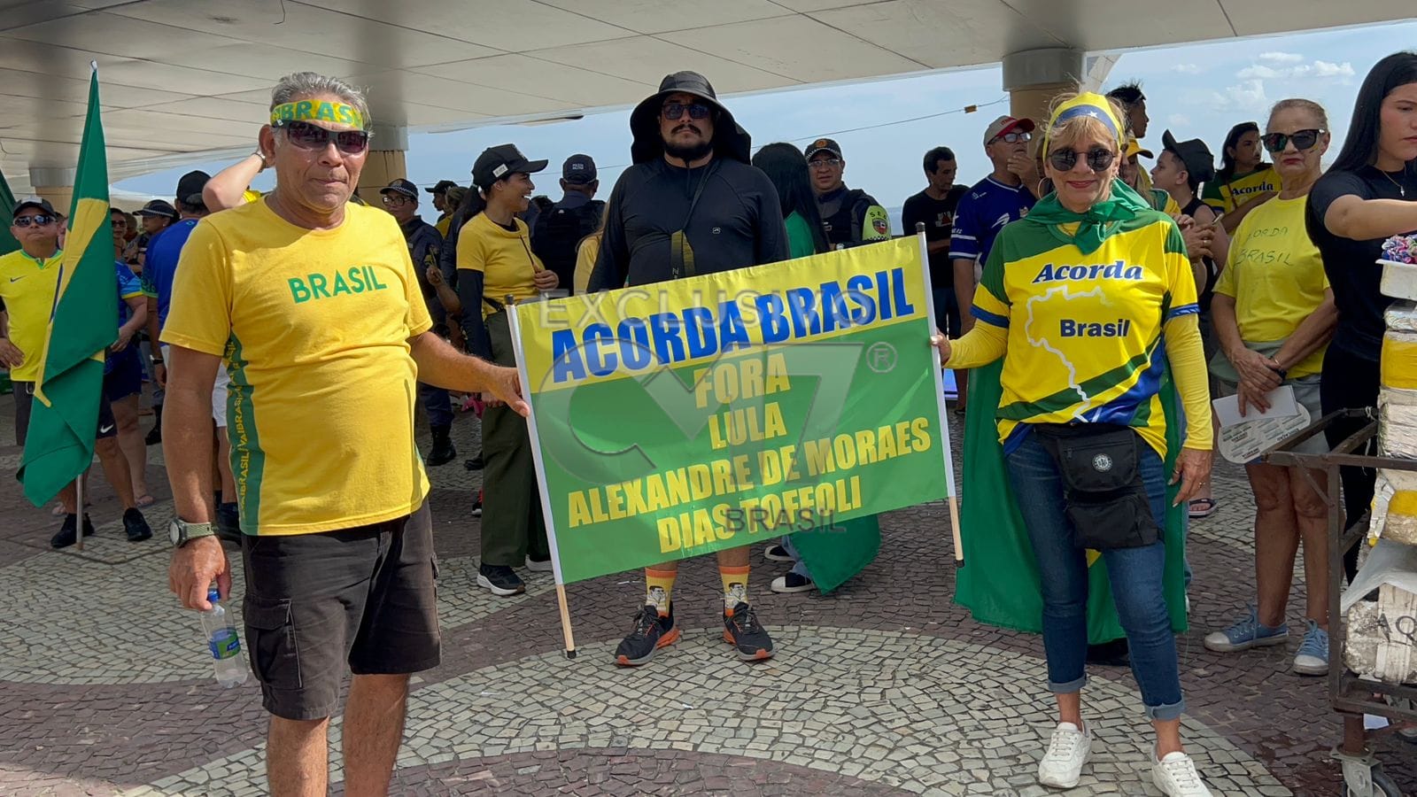 Grupos pró-Bolsonaro percorreram a orla em concentração pacífica, com bandeiras do Brasil, faixas e cartazes com críticas ao presidente Luiz Inácio Lula da Silva e a membros do Supremo Tribunal Federal, exibindo frases como “Fora Lula, Fora Moraes, Fora Toffoli!”. Alexandre de Moraes e Dias Toffoli foram alvos de críticas recorrentes dos manifestantes.