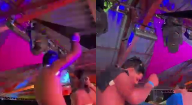 Nas imagens, é possível ver uma mulher quase fazendo sexo no palco do local, enquanto os frequentadores assistem à performance.