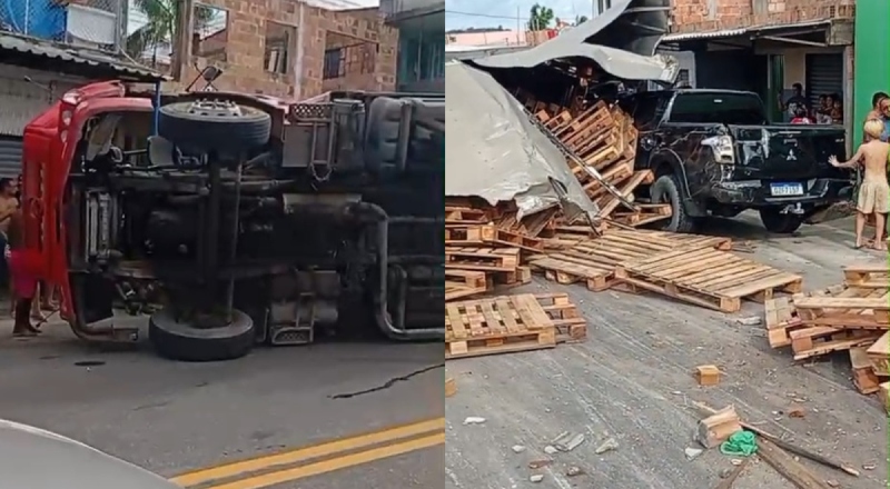 Manaus – Um caminhão que transportava pallets tombou na tarde desta quinta-feira (5), na chamada “Pista da Raquete”, situada no bairro Nova Vitória, na zona leste de Manaus, provocando prejuízos materiais e chamando a atenção de moradores e motoristas que passavam pelo local.
