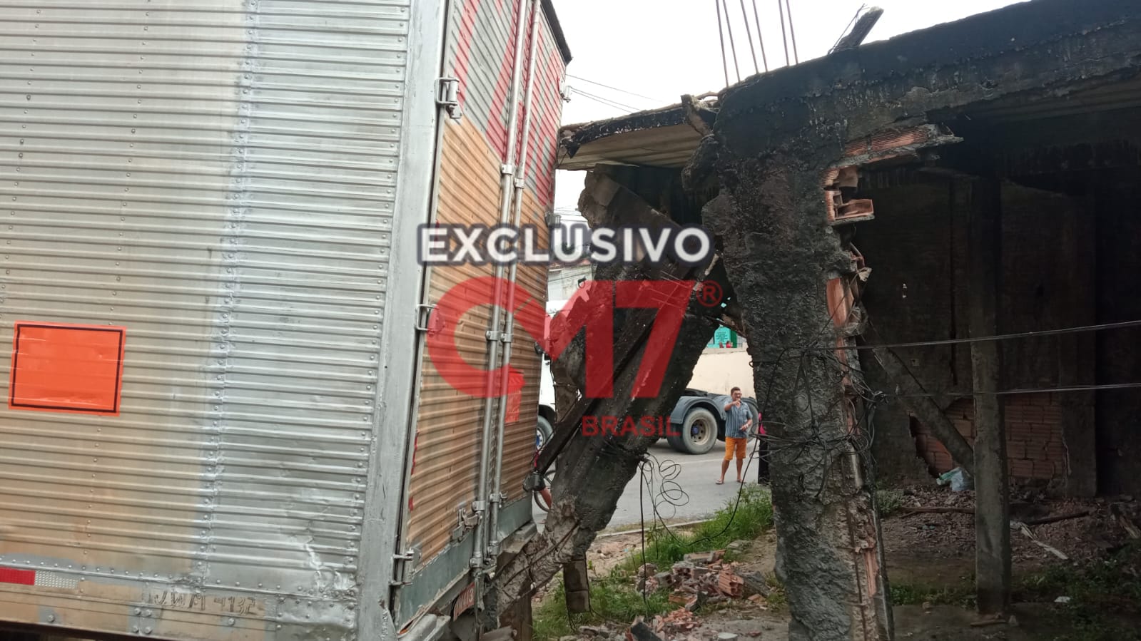 Carreta desgovernada invade casa na zona Leste de Manaus; veja