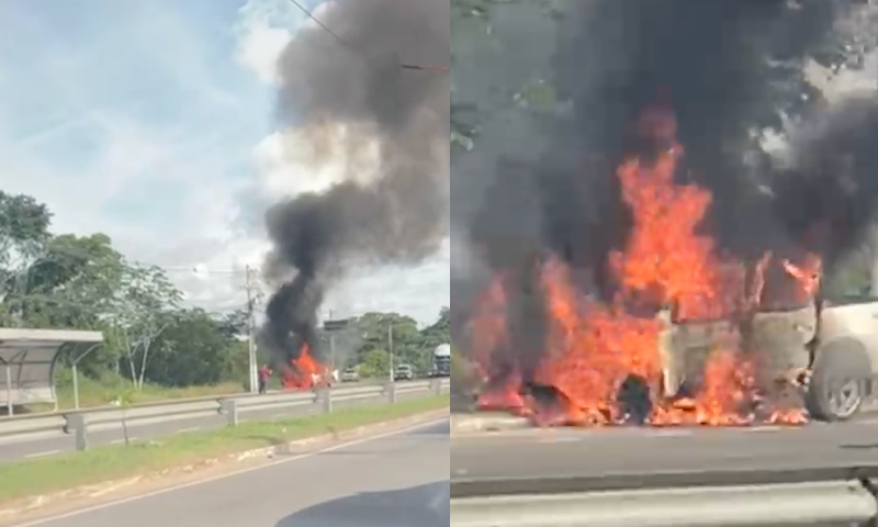De acordo com informações preliminares, o fogo teria começado de forma repentina, possivelmente após uma falha mecânica. Em poucos minutos, as chamas se espalharam e uma densa fumaça preta tomou conta da área, chamando a atenção de quem transitava pela via.