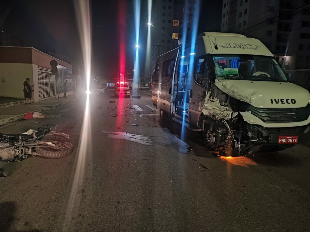 Segundo informações preliminares, um adolescente, de aproximadamente 14 anos, conduzia uma motocicleta em alta velocidade quando colidiu violentamente contra uma van que fazia rota.