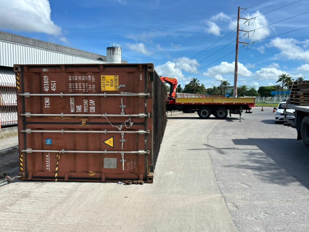 Container se solta de carreta e tomba no meio de avenida de Manaus