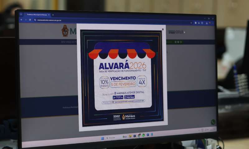 Manaus – A Taxa de Verificação de Funcionamento (TVF), o Alvará 2026, vence nesta quinta-feira, 5/2, para pagamento em cota única ou da primeira parcela. A Prefeitura de Manaus, por meio da Secretaria Municipal de Finanças, Planejamento e Tecnologia da Informação (Semef), já enviou as notificações aos contribuintes, alertando sobre o prazo. Mesmo assim, a segunda via do boleto para pagamento da taxa pode ser emitido pelo aplicativo ou pelo portal de serviços Manaus Atende.