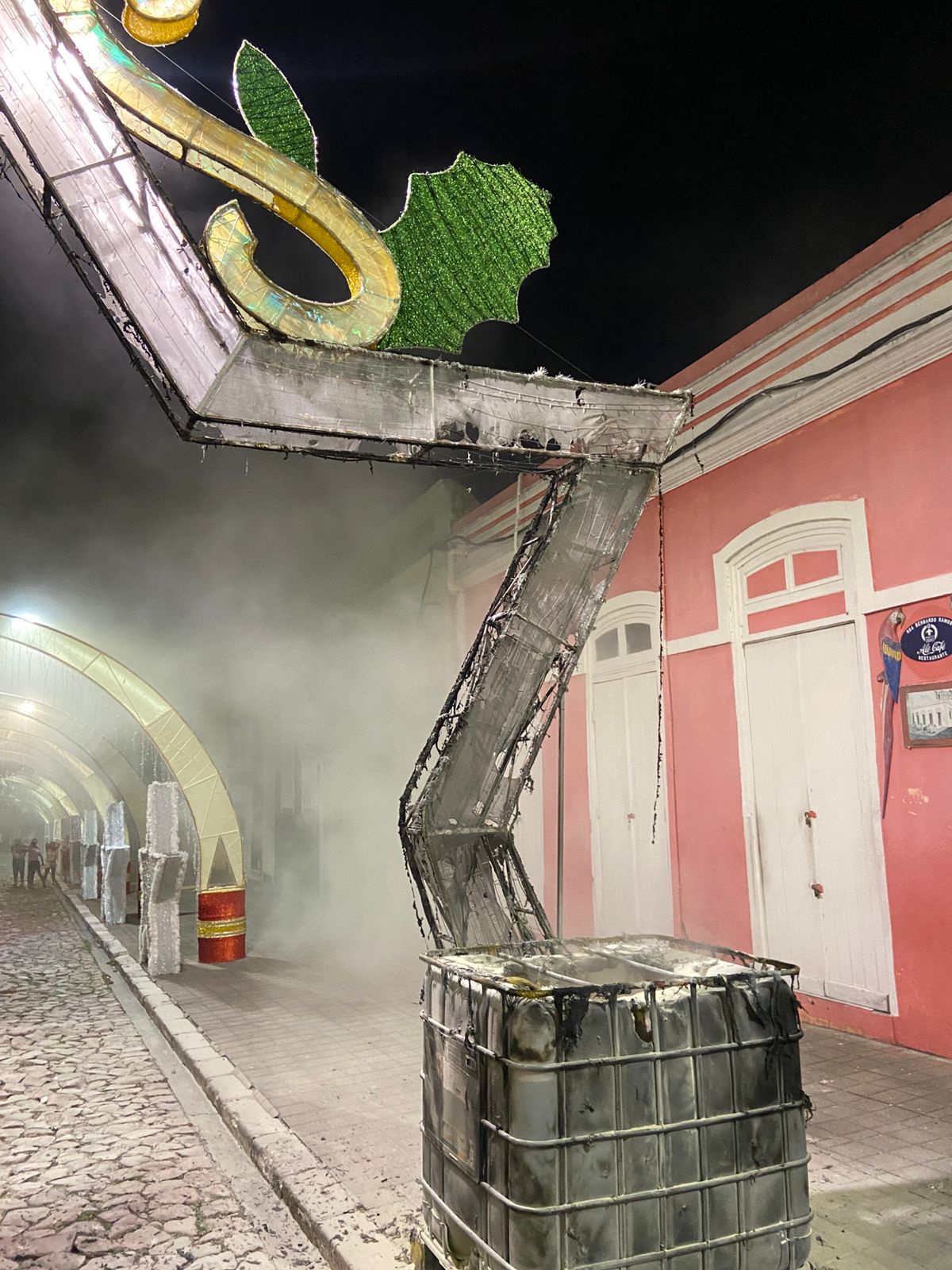 Decoração de Natal é incendiada por vândalos no Centro de Manaus