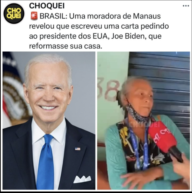 Apesar de ser informada de que entregar sua carta diretamente a Biden seria quase impossível, dona Maria não perdeu a fé, que insistiu: “Minha carta não tá em inglês, mas tem tradução.”