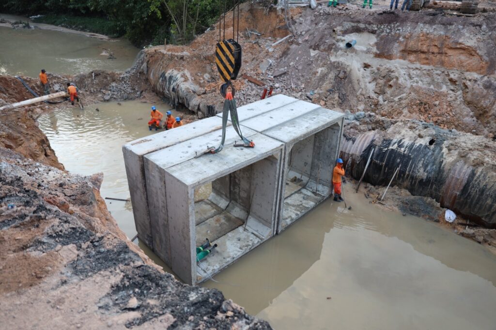 Em 48 horas de obra, Prefeitura de Manaus instala novas aduelas na avenida Mário Ypiranga