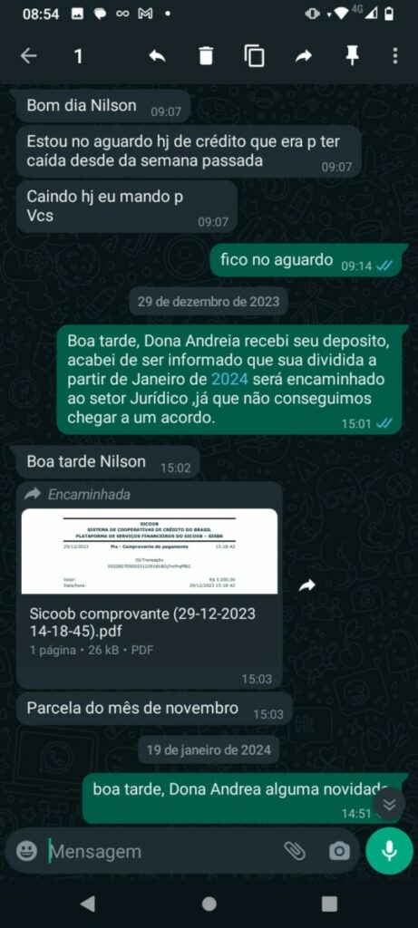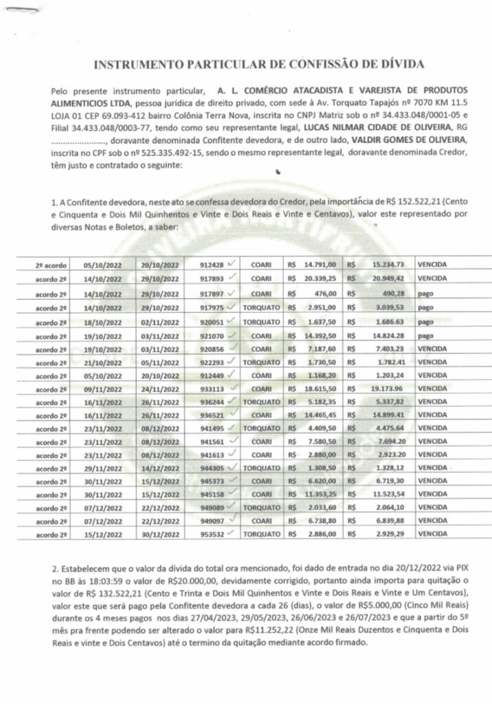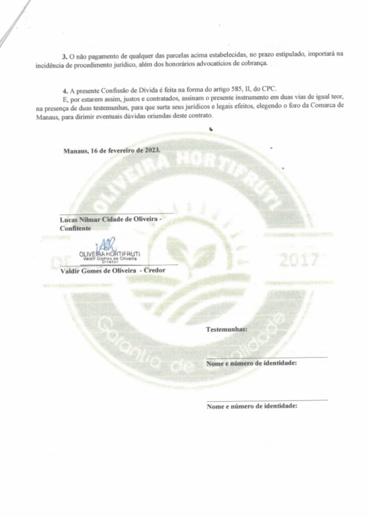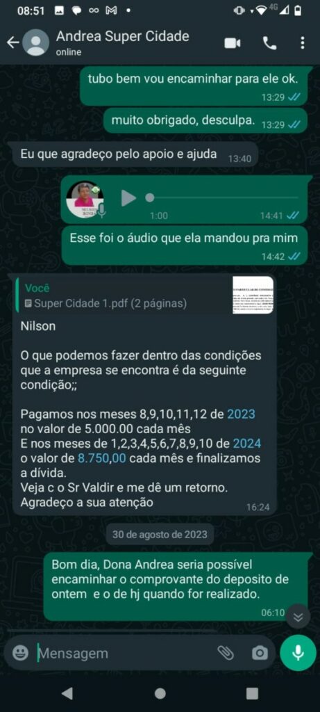 A proposta de pagamento, detalhada por Nilson, sugere um acordo para liquidar a dívida em parcelas mensais. No entanto, o empresário não cumpriu com a sua parte, deixando o feirante com a situação financeira totalmente comprometido.
