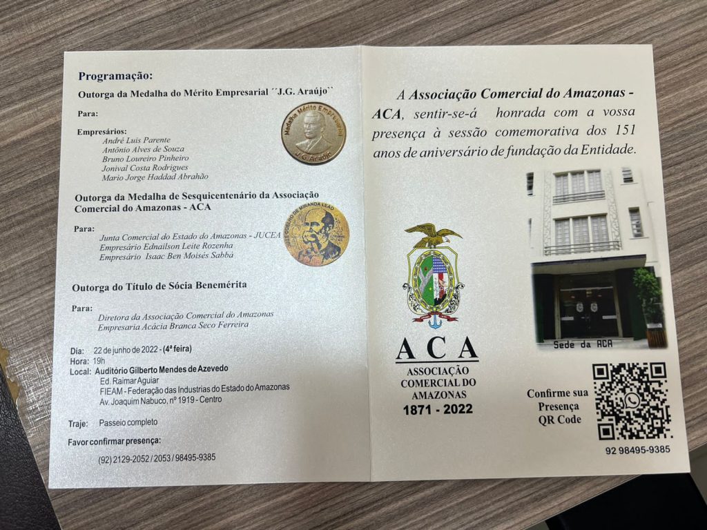 O que: Solenidade em Celebração aos 151 anos da Associação Comercial do Amazonas e Posse da Diretoria para o Biênio 2022-2021