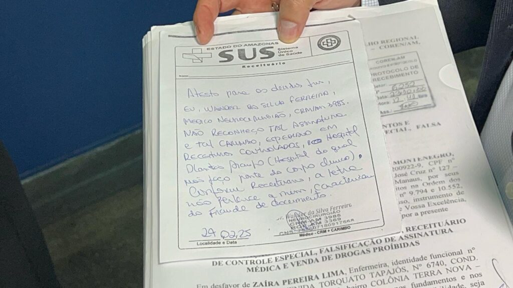 A gravidade do caso ganhou força com o depoimento de pelo menos três médicos que afirmaram não reconhecer as assinaturas atribuídas a eles em receituários. Entre os profissionais lesados está um neurocirurgião, cuja assinatura falsa indicava que ele seria médico do Hospital e Pronto-Socorro (HPS) Platão Araújo. O especialista negou veementemente a autenticidade do documento e esclareceu que não integra o corpo clínico da unidade de saúde.