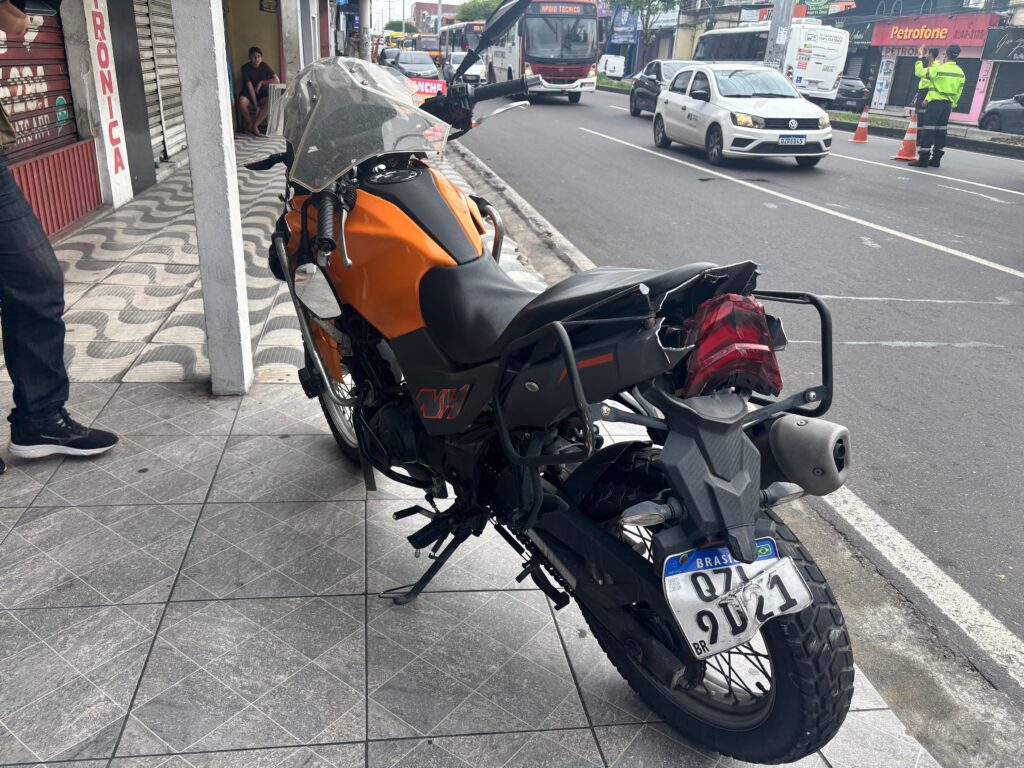 A motocicleta de Felipe foi parar debaixo de um dos ônibus e sofreu diversos danos.
