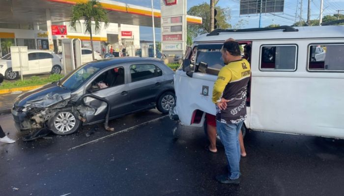 Manaus – Um acidente entre um carro e uma Kombi na manhã desta segunda-feira (29) deixou dois motoristas feridos na Avenida Torquato Tapajós, sentido Centro/bairro, na Zona Norte de Manaus.