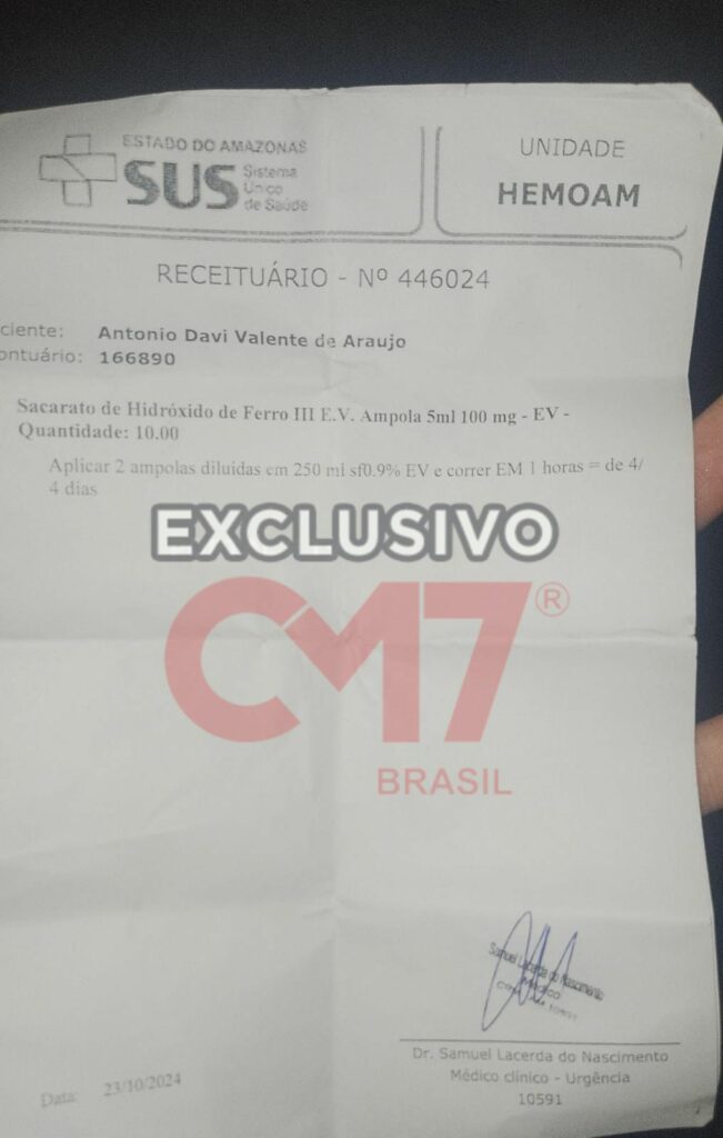 A situação se repete no Hemoam, onde também há relatos de falta de medicamentos e materiais essenciais para o tratamento de pacientes.