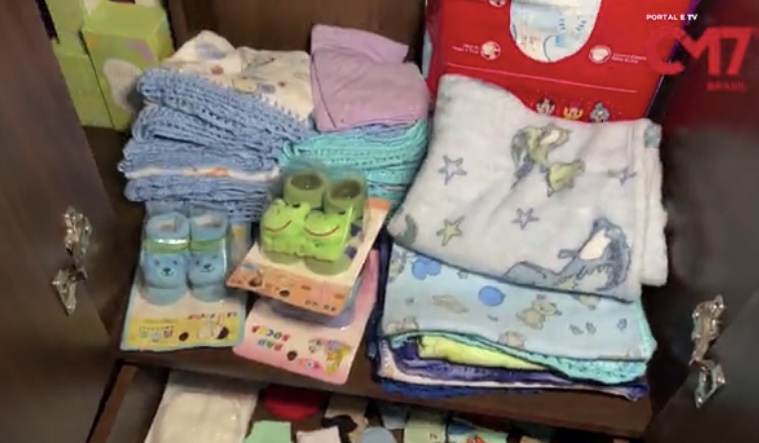 A tia de Débora mostrou o quarto da jovem, que já estava cheio de coisas de bebê. Arthur, já tinha muitas roupinhas e calçados. Ganhava muitos brinquedos e produtos de higiene dos familiares, que já o esperavam cheios de amor para dar.