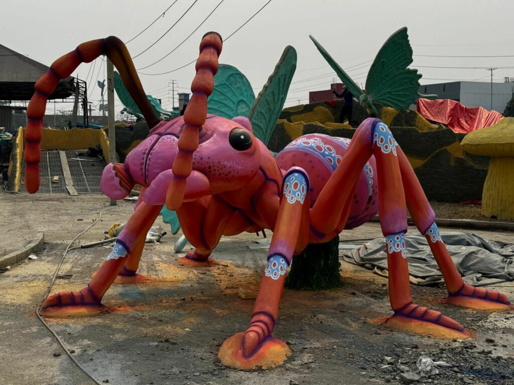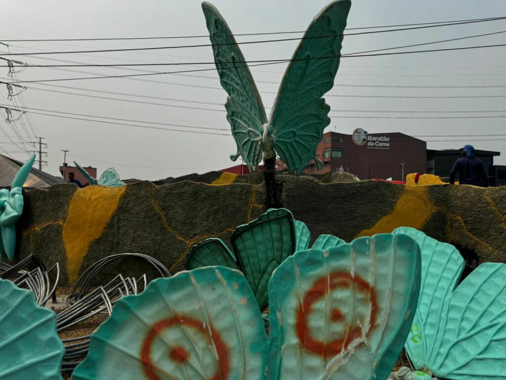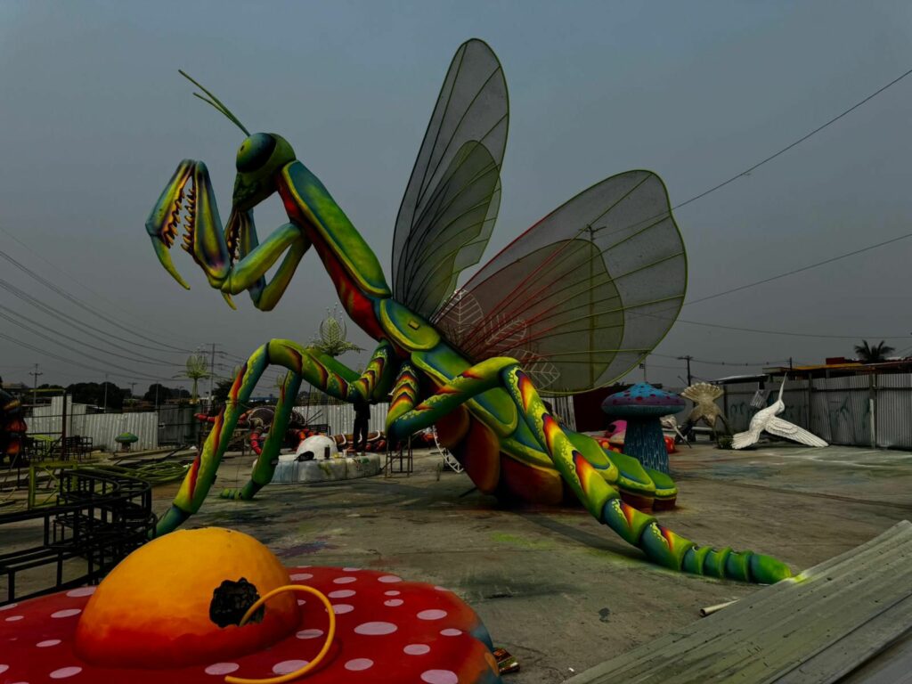 Os insetos estão na fase de acabamento de pintura artística, onde as tintas são usadas com um toque de realismo fantástico. O borboletário, que terá uma passarela, está em fase final de concretagem, e as borboletas fibradas (fibra de vidro) aguardam a colocação nos pontos e pintura.
