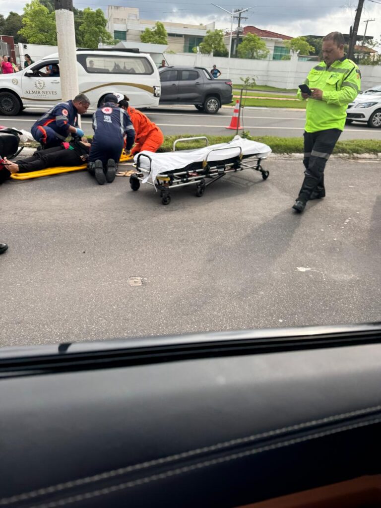 De acordo com informações iniciais, a idosa acabava de sair de um condomínio onde trabalhava e tentava atravessar a via quando foi atingida pela motocicleta. O impacto jogou ambas ao chão, onde permaneceram até a chegada do socorro.