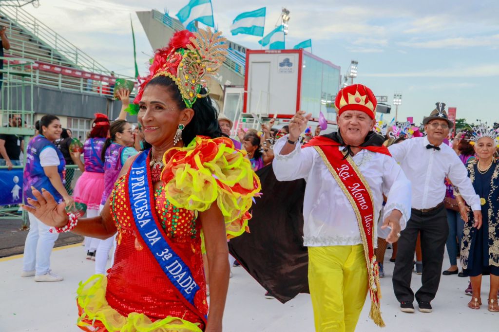 Manaus – As cores e marchinhas dos grandes bailes do carnaval de Manaus foram levados por mais de 1,8 mil idosos ao Sambódromo, para a abertura do desfile das Escolas de Samba do Grupo Especial, neste sábado (03). Os 53 grupos reviveram emoções e celebraram os direitos das pessoas idosas, mostrando toda a alegria e disposição da terceira idade.
