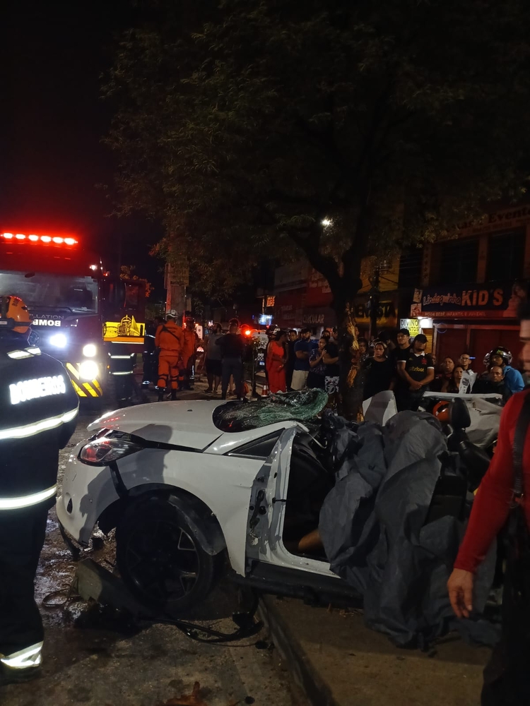 De acordo com a polícia, o Ford Focus, placa KQX4E05, em que os dois estavam capotou na via e, em seguida, colidiu violentamente contra uma árvore, próximo à base do Serviço de Atendimento Móvel de Urgência (SAMU). O impacto destruiu completamente a parte frontal do veículo.