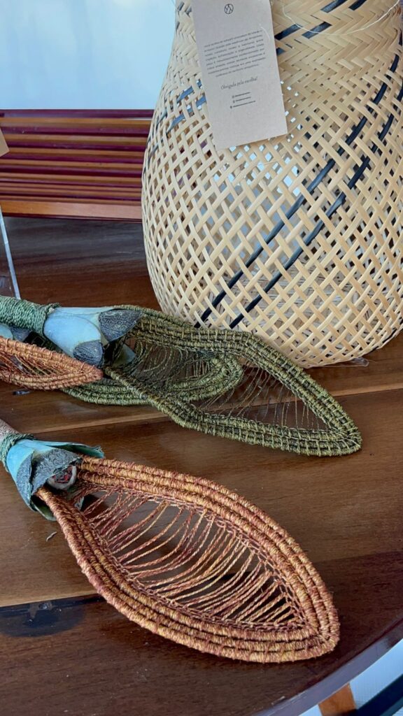 Entre os protagonistas da tarde, Arthur Teixeira, artesão da região, emocionou o público ao compartilhar sua trajetória com a arte manual e sua relação íntima com a floresta. Suas criações, expostas no evento, foram destaque pela autenticidade e força simbólica. “Cada peça tem alma, tem história. A floresta me ensina todos os dias”, declarou Arthur.