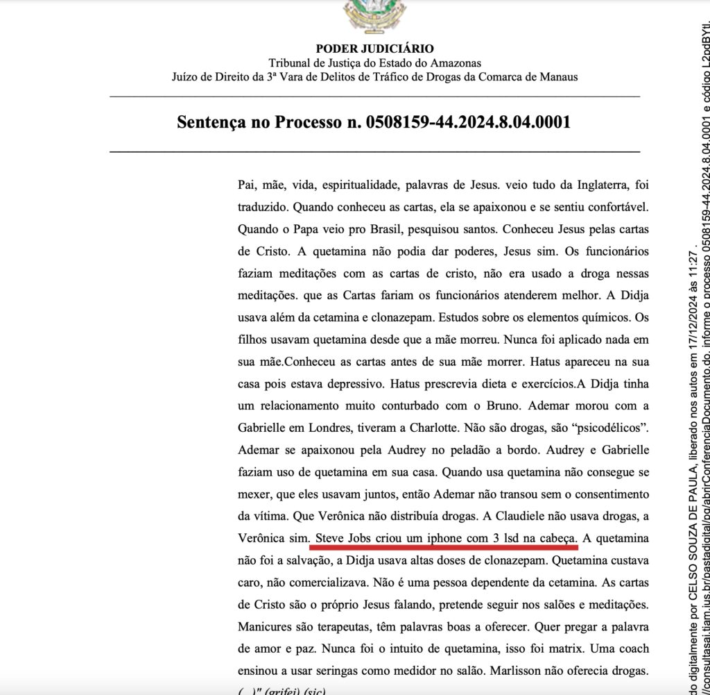 Cleusimar fez uma afirmação inusitada ao mencionar que a criação do iPhone teria sido inspirada após Steve Jobs consumir três doses de LSD.