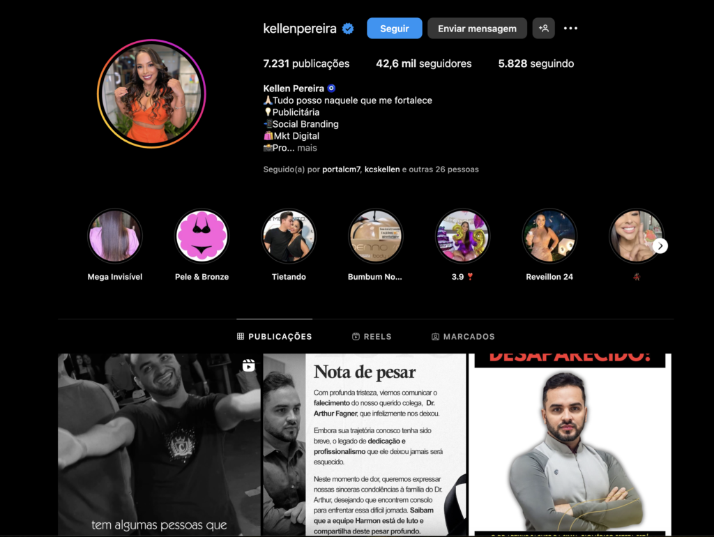 Kellen, que era uma das pessoas que esteve presente na festa onde Arthur foi visto pela última vez antes de seu desaparecimento, havia alegado à polícia que conhecia Vinícius Heiriger, principal suspeito, especialmente após a revelação de uma briga entre ele e Arthur na noite do desaparecimento. No entanto, um print evidencia Kellen seguia Vinicius nas redes sociais e contradiz suas alegações. A conexão entre a blogueira e o suspeito, ainda que apenas virtual, pode indicar uma relação prévia que Kellen inicialmente tentou ocultar.