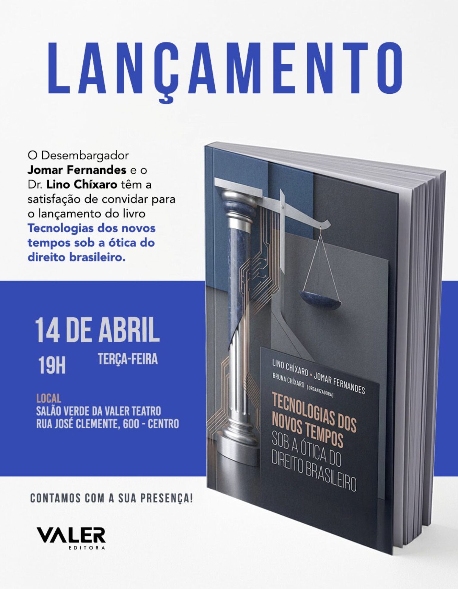 O evento é promovido pelo desembargador Jomar Fernandes e pelo advogado Dr. Lino Chíxaro, que assinam o convite e reúnem especialistas interessados na interface entre tecnologia e Direito. A publicação aborda temas contemporâneos, como inovação, avanços tecnológicos e seus impactos nas relações jurídicas no Brasil.