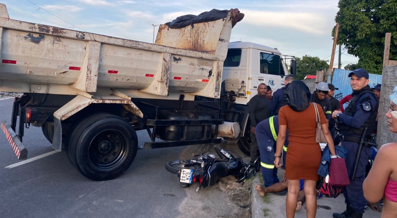 Motoqueiro fica gravemente ferido durante acidente com caminhão em Manaus; veja vídeo