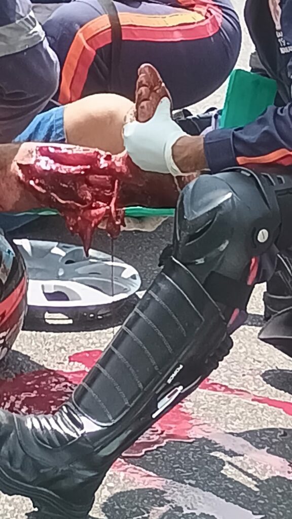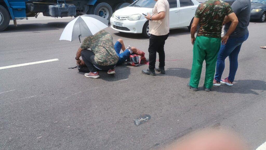 Manaus – Neste sábado (3), um motociclista, que não teve a identidade divulgada, teve a perna esmagada durante um acidente ocorrido na Avenida das Torres, zona Norte da capital amazonense.