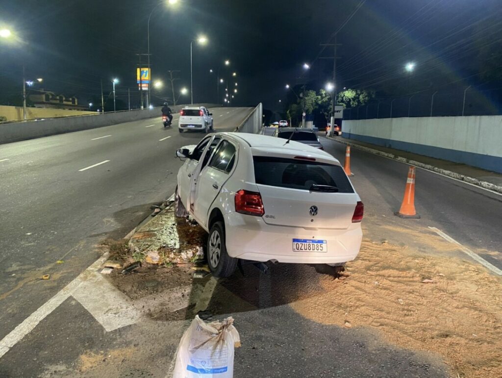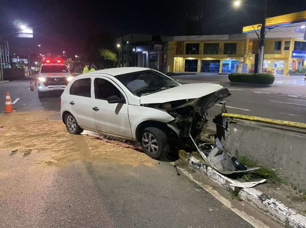 Motorista dorme ao volante e acaba colidindo com mureta na Av. Mário Ypiranga