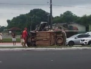 Motorista capota carro no bairro Ponta Negra; veja vídeo