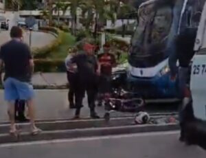 Acidente entre moto e ônibus deixa uma pessoa ferida na Avenida Torquato Tapajós; veja vídeo