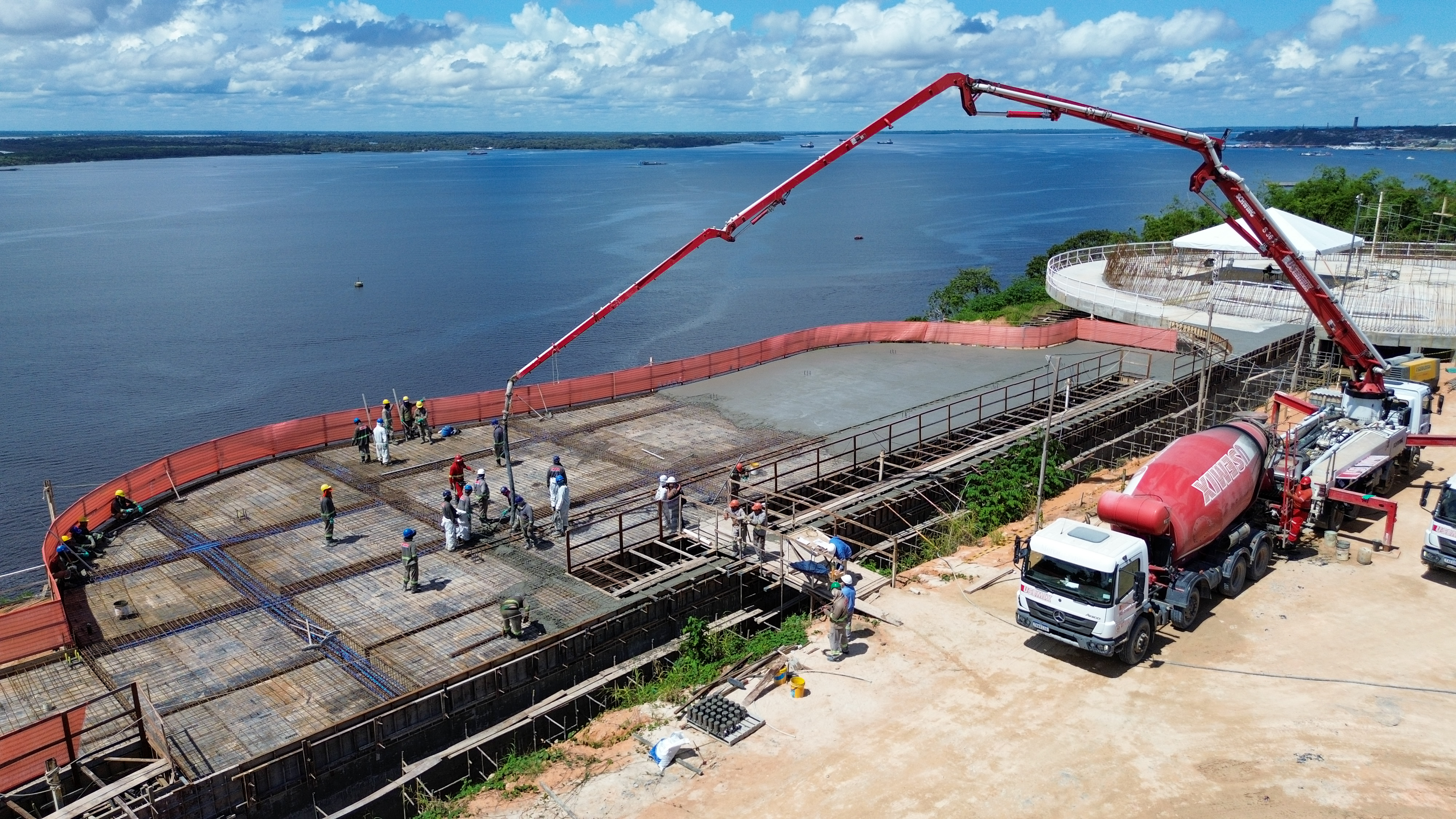 Ele destacou ainda o avanço estrutural do restaurante, cuja laje foi concretada na última sexta-feira, 27/3, e detalhou os próximos passos da construção da oca. “Nesta semana iniciaremos o primeiro anel da estrutura da cúpula. A estimativa é que toda a estrutura em concreto esteja concluída em cerca de dois meses, avançando depois para acabamento e instalação dos equipamentos”, explicou Valente.