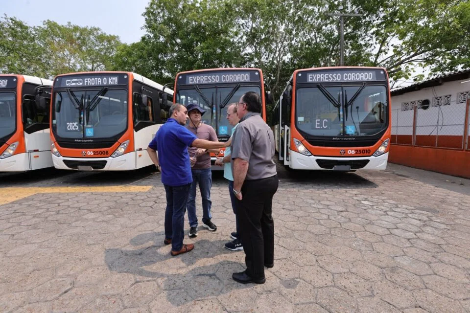 Durante a vistoria dos veículos, Almeida destacou que os novos ônibus visam melhorar o conforto e a segurança no transporte coletivo.