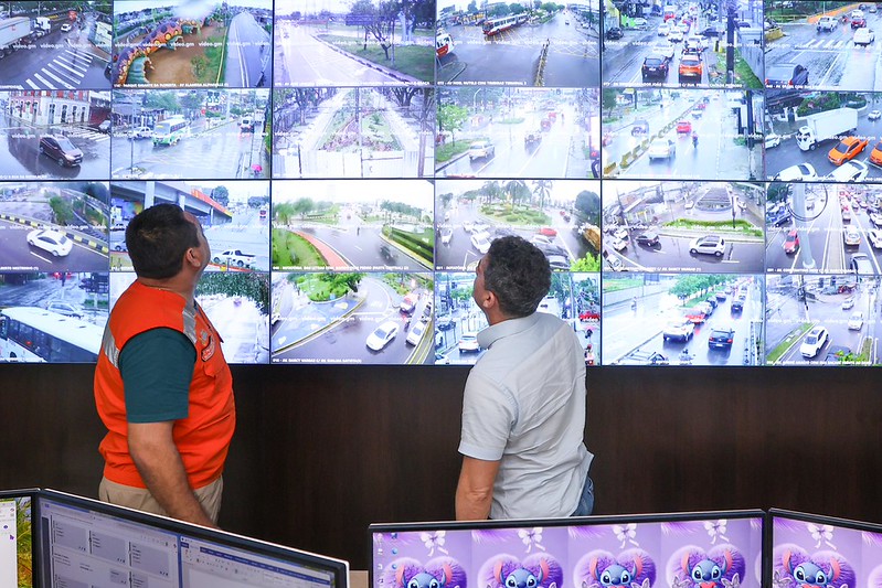 Mais tarde, ao lado do secretário municipal de Segurança Pública e Defesa Social, Alberto Siqueira, e do secretário-executivo da Defesa Civil Municipal, coronel Lima Júnior, David Almeida mostrou o monitoramento e o direcionamento das equipes de campo para atendimento às ocorrências.