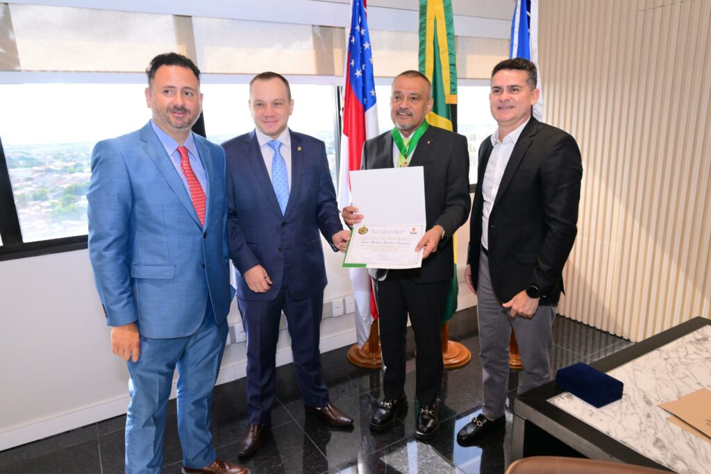 Durante o encontro, o prefeito David Almeida presenteou o desembargador Jomar Fernandes com a medalha de Honra ao Mérito do Município, um reconhecimento pelo papel da liderança do magistrado na promoção da justiça no Amazonas. “Esta medalha é uma forma de homenagear o trabalho exemplar realizado pelo presidente do TJ-AM e de reforçar nosso compromisso de trabalhar em cooperação para o desenvolvimento de Manaus”, declarou o chefe do Executivo municipal.