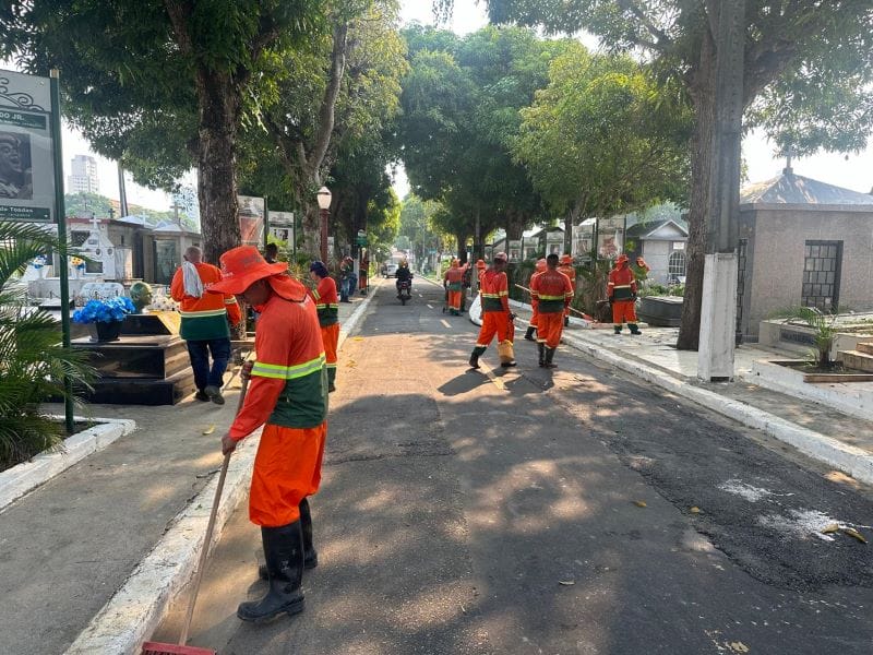 De acordo com o titular da Semulsp, Sabá Reis, as ações incluem varrição, capina, poda, recolhimento de resíduos e higienização de túmulos e áreas comuns. “Cuidar desses espaços é um gesto de respeito com as famílias que vêm prestar homenagens aos seus entes queridos. Um ambiente limpo traz dignidade e conforto, além de valorizar nossa história e cultura”, destacou Sabá Reis.
