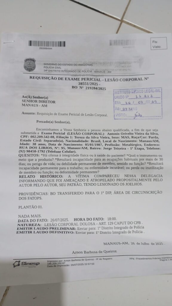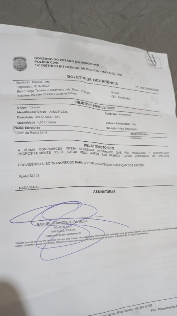 Amazonas – O empresário Euden da Rocha Lima, foi flagrado em imagens que circulam nas redes sociais discutindo com um soldador, identificado como Antônio Orivelto Vieira da Silva, em uma obra localizada na avenida Tefé, bairro Japiim, Zona Sul de Manaus. O caso teria ocorrido no último sábado (26), segundo relato da vítima.