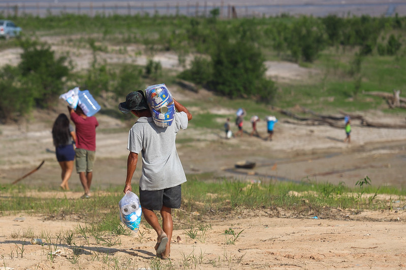 Manaus, AM – Moradores do bairro Puraquequara, localizado na zona leste de Manaus, receberam ajuda humanitária no último sábado (7) devido à seca severa que afeta os ribeirinhos da região. Diversos órgãos da Prefeitura de Manaus se uniram para levar cestas básicas e kits de higiene a 130 famílias de quatro comunidades ribeirinhas.