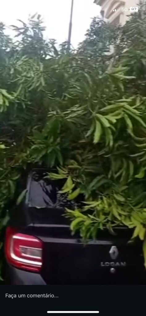 Manaus – Durante a ventania do temporal que caiu nesta terça-feira (14), uma árvore caiu em cima de um veículo modelo Renault Logan na frente da antiga Casa da Misericórdia, na rua 10 de Julho, Zona Centro Sul de Manaus.