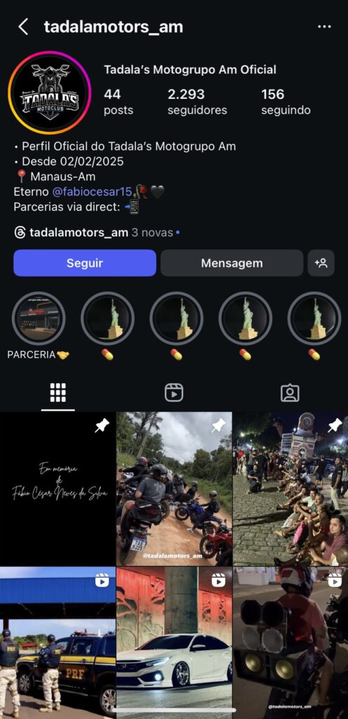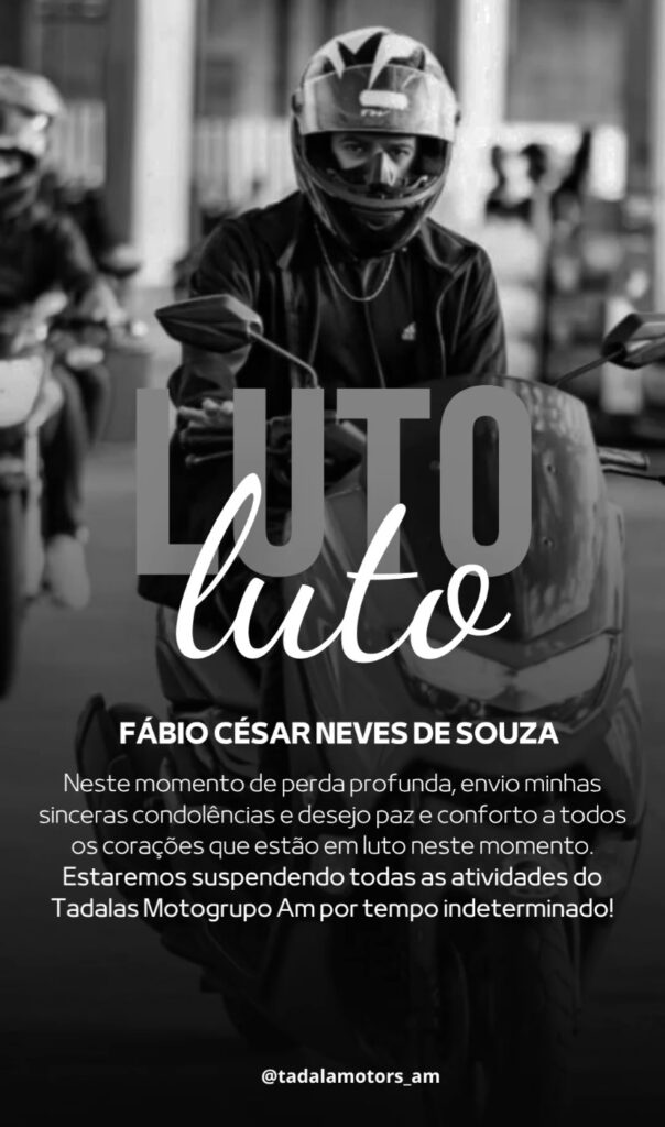Fábio Cesar era um apaixonado por motocicletas e bastante conhecido entre os amantes do motociclismo em Manaus. Ele era administrador da página “Tadalas Motogrupo AM Oficial” no Instagram, que reúne quase 3 mil seguidores apaixonados por motos.