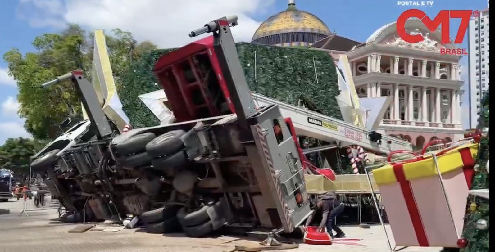 Manaus – Parte da árvore de Natal que estava sendo montada no Largo de São Sebastião, no Centro Histórico de Manaus, desabou na manhã deste domingo (23). Segundo informações, a estrutura estava sendo erguida quando o guindaste que auxiliava na instalação tombou para o lado. No momento do acidente, havia trabalhadores realizando serviços de montagem e acabamento. Equipes do Serviço de Atendimento Móvel de Urgência (Samu) e autoridades de segurança foram acionadas imediatamente.