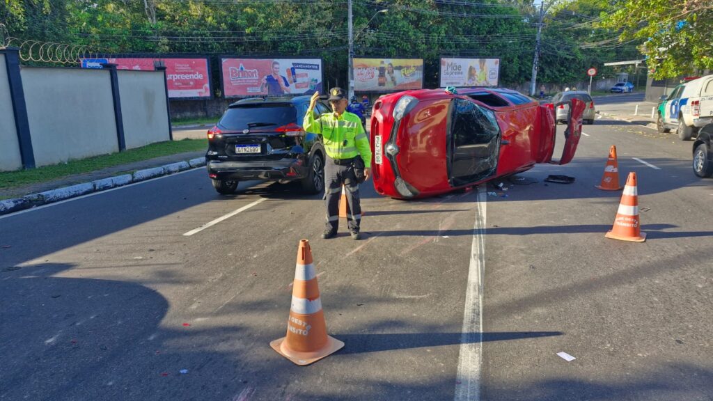 Urgente: carro capota com a família inteira dentro durante acidente em Manaus; veja vídeo