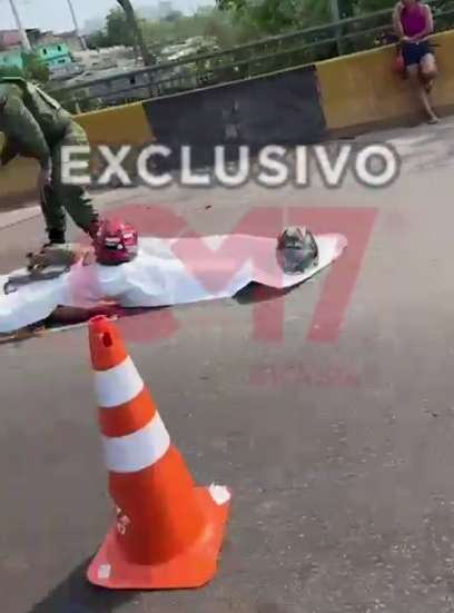 Imagens obtidas com exclusividade pelo Portal CM7 Brasil mostram as duas vítimas jogadas na pista, com tecidos brancos sobre o corpo, após terem seus óbitos confirmados pelo Serviço de Atendimento Móvel de Urgência (SAMU).