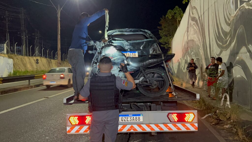 Manaus – Um grave acidente foi registrado na noite desta quinta-feira (15) em um trecho da avenida das Flores, ma zona Norte de Manaus. A colisão envolveu uma motocicleta e um veículo modelo Ford Ka.