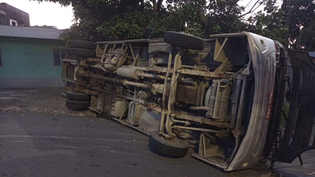 Manaus – Nesta sexta-feira (17), um ônibus tombou na rua H, bairro Nova Cidade, zona Norte da capital amazonense.