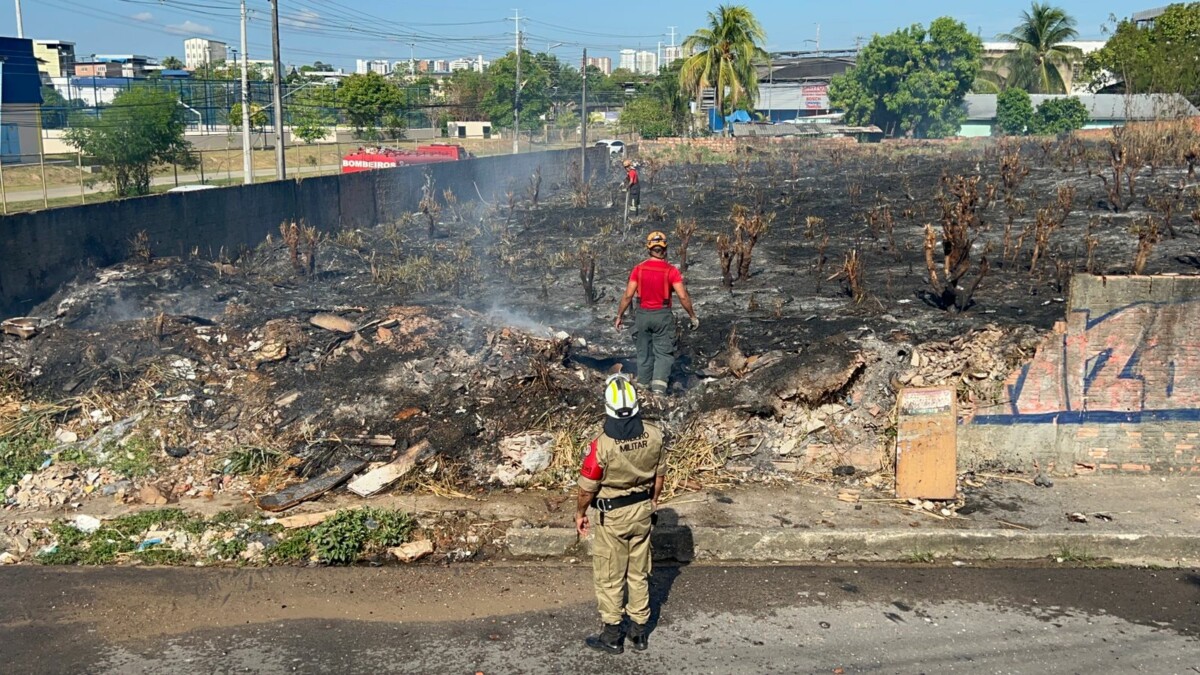 Manaus – Um incêndio tomou conta de uma área de vegetação localizada em um terreno baldio, na avenida Brasil, com esquina com a Rua São João, no bairro Santo Antônio, na zona oeste de Manaus.