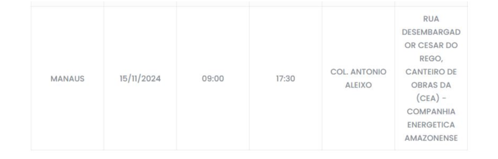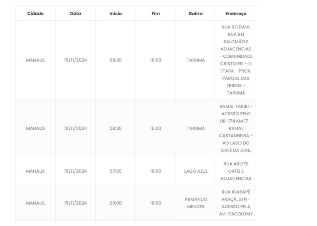 Veja quais bairros de Manaus vão ficar sem energia em pleno feriado