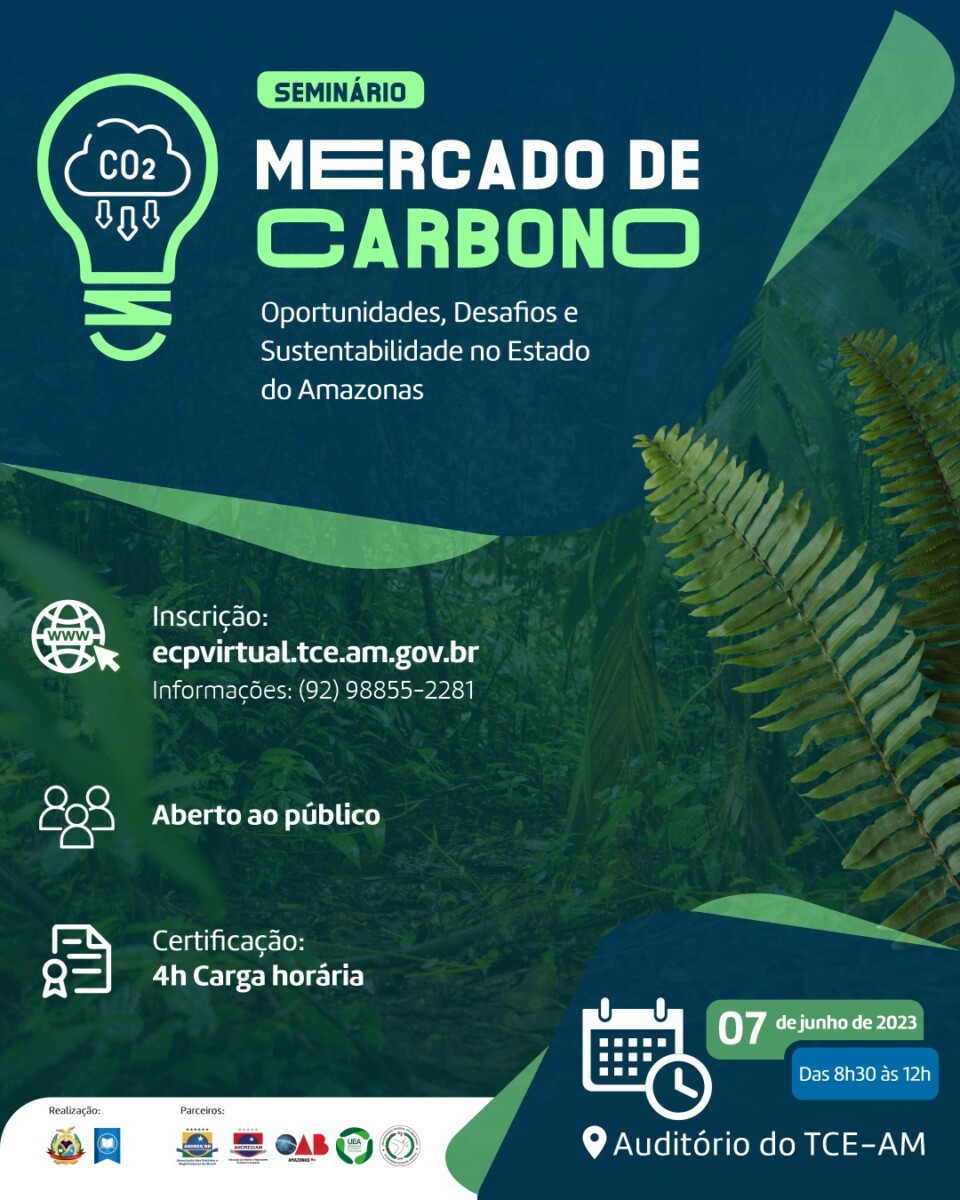 Amazonas – Com o objetivo de ampliar a discussão sobre o mercado de carbono e estimular autoridades e stakeholders do Amazonas a uma análise crítica sobre o tema, o Tribunal de Contas do Amazonas (TCE-AM) realiza, das 8h30 às 12h do dia 7 de junho, o Seminário “Mercado de Carbono – Oportunidades, Desafios e Sustentabilidade no Estado do Amazonas”.