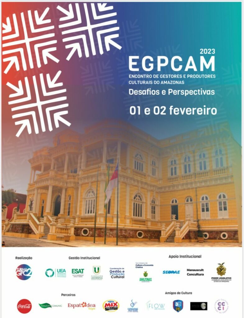 Amazonas – Após o desmanche que o setor cultural sofreu nos últimos anos e com a pandemia, o I Encontro de Gestores e Produtores Culturais do Amazonas (EGPCAM) traz para discussão os desafios e perspectivas da gestão e produção cultural no Amazonas. O evento acontece nos dias 01 e 02 de Fevereiro, no Palácio Rio Negro e a programação conta com palestras, painéis, mesas redondas, feira criativa, espaço gastronômico e apresentações artísticas.